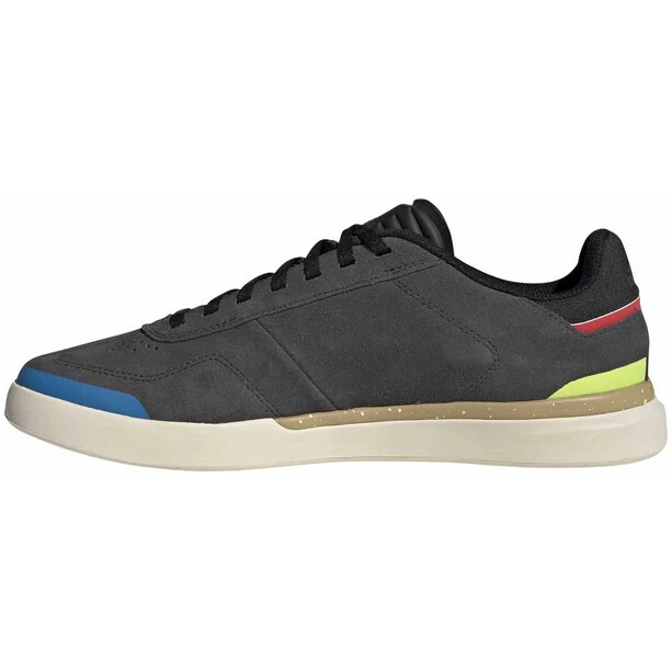 Aus beiden Welten kommt hier das Beste zusammen. Der schlanke schnörkellose Schnitt von adidas, der etwas an den Samba erinnert und die Robustheit und unangefochtene Trittsicherheit der Five Ten Stealth Sohlen. Ideal für Flatpadels! Aber auch abseits des Bikesports macht dieses Modell eine klasse Figur und mischt jeden Freizeitlook positiv auf.