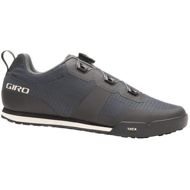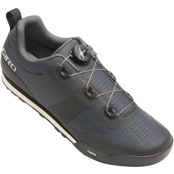 Der Tracker W erfüllt den Wunsch nach einem radsport- bzw. e-Bike-freundlichen Flat-Pedal-Schuh, der leicht, bequem und atmungsaktiv genug für ganztägige Abenteuer ist und dabei aber nicht auf Grip oder Leistung verzichtet. Aufgebaut auf Giros neuen optimierten System, das den Fuß näher am Pedal platziert und ein flaches Profil für optimalen Pedalkontakt aufweist, steht der Tracker in direkter Linie zu den aggressiveren Flat-Pedal-Modellen. Die Tack Gummi-Außensohle greift in die Flat-Pedal-Pins und eine zweischichtige EVA-Zwischensohle bietet Komfort auch abseits des Bikes. Das BOA L6 Drehverschlusssystem ermöglicht ein schnelles An- und Ausziehen und eine einfache Anpassung an den Fuß.