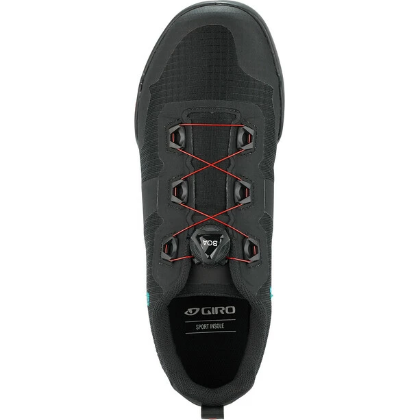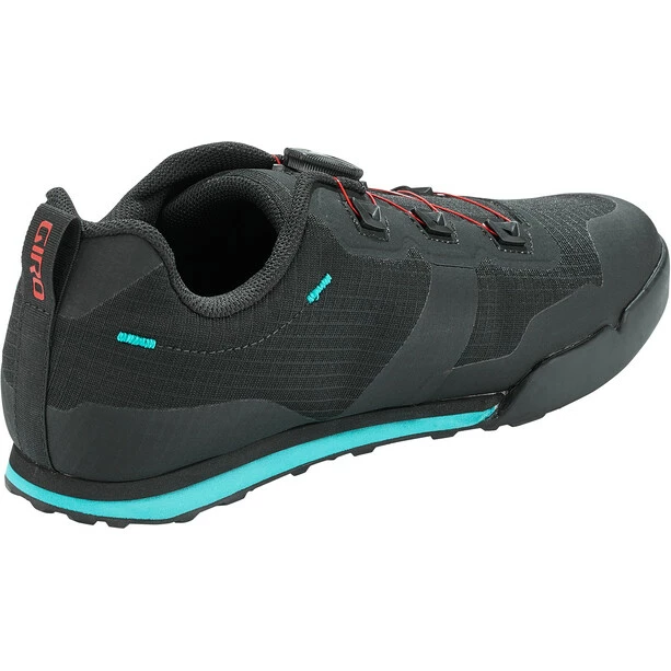 Der Tracker erfüllt den Wunsch nach einem radsport- bzw. e-Bike-freundlichen Flat-Pedal-Schuh, der leicht, bequem und atmungsaktiv genug für ganztägige Abenteuer ist und dabei aber nicht auf Grip oder Leistung verzichtet. Aufgebaut auf Giros neuen optimierten System, das den Fuß näher am Pedal platziert und ein flaches Profil für optimalen Pedalkontakt aufweist, steht der Tracker in direkter Linie zu den aggressiveren Flat-Pedal-Modellen. Die Tack Gummi-Außensohle greift in die Flat-Pedal-Pins und eine zweischichtige EVA-Zwischensohle bietet Komfort auch abseits des Bikes. Das BOA L6 Drehverschlusssystem ermöglicht ein schnelles An- und Ausziehen und eine einfache Anpassung an den Fuß.