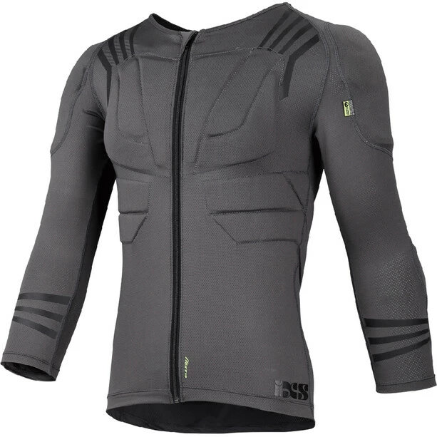 Das Trigger upper protective Jersey wurde von IXS speziell für den härteren Einsatz entwickelt. Protektorenjacken dieser Art müssen nicht schwer und ungemütlich sein. Das Trigger Jacket verfügt über eine zertifizierte X-Matter-Polsterung im Rücken und Schulterbereich zur Absorbtion der Aufprallenergie im Fall eines Sturzes. Diese werden ergänzt von Ellbogenschonern sowie einer NockOut-Polsterung im Brust- und Rippenbereich. Der eng anliegende und ergonomische Schnitt sowie das atmungsaktive und feuchtigkeitstransportierende Trägermaterial gewähren besten Sitz und ein angenehmes Körpergefühl. zusätzlicher Tragekomfort entsteht durch die Verwendung eines dehnbaren Reißverschlusses (FlexZip) im Frontbereich.