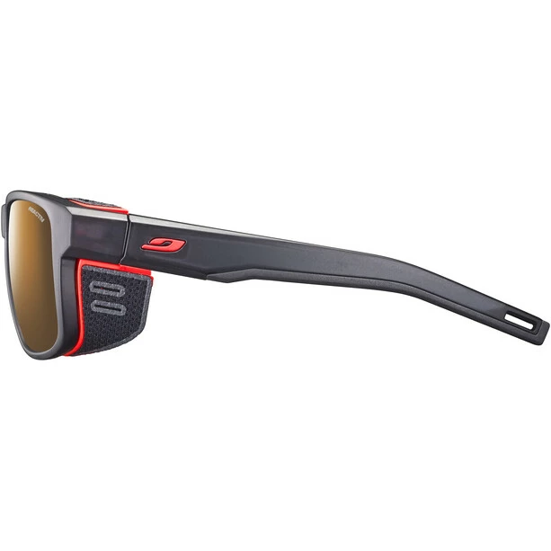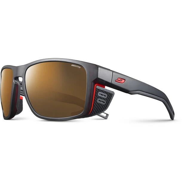 Julbo hat bei diesem Modell seine technische Erfahrung auf dem Gebiet der Hochgebirgsbrillen mit modernem, ästhetischem Design kombiniert, um eine leistungsstarke Brille mit hohem Schutzniveau zu entwickeln. Ihre abnehmbaren, textilen Seitenteile gewährleisten dabei sicheren Schutz und angenehmen Sehkomfort. Dank ihrem besonders leistungsstarken Belüftungssystem Air Flow ist die SHIELD die Brille der Wahl bei anstrengenden Anstiegen. Mit ihren gewölbten Grip Tech Bügeln und rutschfestem Nasensteg sitzt diese Brille immer zuverlässig da, wo sie hingehört. Zudem sorgt ihr stilvolles Design für einen zusätzlichen Coolness-Faktor im Gebirge.