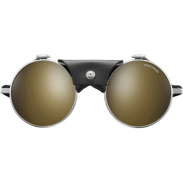 Die Julbo Vermont Classic Spectron 4 kommt als klassische Gletscherbrille, wie könnte das auch anders sein, natürlich mit einem Nasenschutz und Seitenteilen aus Leder. Anlässlich des 125-jährigen Firmenjubiläums kommt der Klassiker in neuer, überarbeiteter Form. Ebenfalls ganz traditionell: ihre Bügelenden können um 360 Grad verstellt werden, so sitzt die Gletscherbrille absolut sicher und lässt sich an die individuelle Kopfform anpassen. Die Belüftung geschieht über die bei Bedarf abnehmbaren Seitenteile, daher wird ein Beschlagen und damit eine eingeschränkte Sicht verhindert. Mit ihren hochwertigen Polycarbonatgläsern der Filterklasse 4 ist die Vermont Classic Spectron 4 absolut für den Einsatz in großen Höhen und unter intensiven Lichtverhältnissen geeignet. Eine voll funktionale Gletscherbrille, die mit ihrem Vintage Design jedoch keinesfalls unterschätzt werden darf.