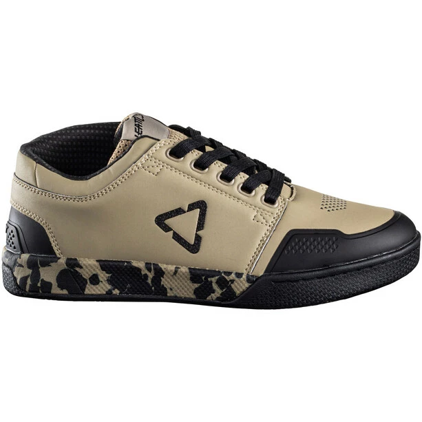 Der Leatt 3.0 Flatpedal Shoe hat eine flache Sohle mit griffigem Fersen- und Zehenbereich und eine flexible und gleichzeitig steife Zwischensohle. Die RideGrip-Mischung erzeugt einen guten Grip auch auf nassen Oberflächen. Apropos Nässe: Das Obermaterial des Leat 3.0 ist aus wasserabweisendem und pflegeleichtem Kunstleder. Auch die Zunge ist wetterfest und trägt trotz Polsterung kaum auf. Ein Knöchelschutz und verstärkte Zehen-, Fersen- und Achillesbereiche runden das Ganze ab und machen den zu einem stylischen und zweckmäßigen Begleiter auf dem Trail.