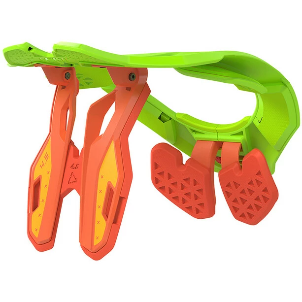 Leatt Nackenstützen sind so konzipiert, dass sie die Kräfte, die bei einem Aufprall zu Verletzungen führen können, sicher und effizient auf andere Körperteile übertragen und so das Risiko von Nacken- und Schlüsselbeinverletzungen verringern. Die geteilte, klappbare CoreFlex-Thoraxstrebe hinten ist so konzipiert, dass sie mit den natürlichen Bewegungen des Körpers zusammenarbeitet, um einen bequemeren Sitz zu gewährleisten, und sich löst, bevor übermäßiger Druck auf den Rücken ausgeübt wird.