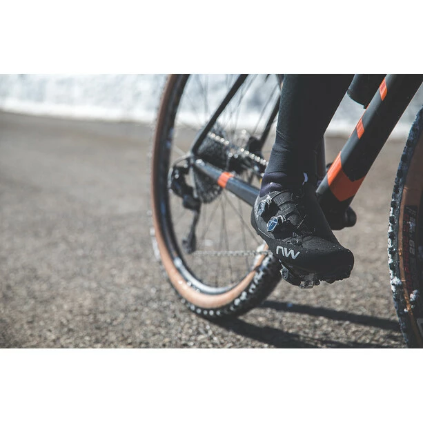 Der Easyfit-Einstiegsbereich gewährleistet dank der charakteristischen Eigenschaften des Neoprens Beweglichkeit und Schutz vom Spann bis zum Knöchel. Nicht ein, sondern zwei Rotoren. Der SLW3-Verschluss ist das Kronjuwel von Northwave und der einzige mit einer schrittweisen Freigabe, die eine millimetergenaue Anpassung der Passform beim Tragen ermöglicht, selbst wenn man Winterhandschuhe trägt. Die „Overlap“-Konstruktion des Obermaterials verteilt gleichmäßig den Druck des Verschlusses und trägt dazu bei, jedes Watt Leistung beim treten zu übertragen.
