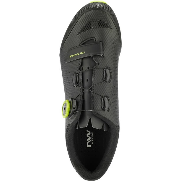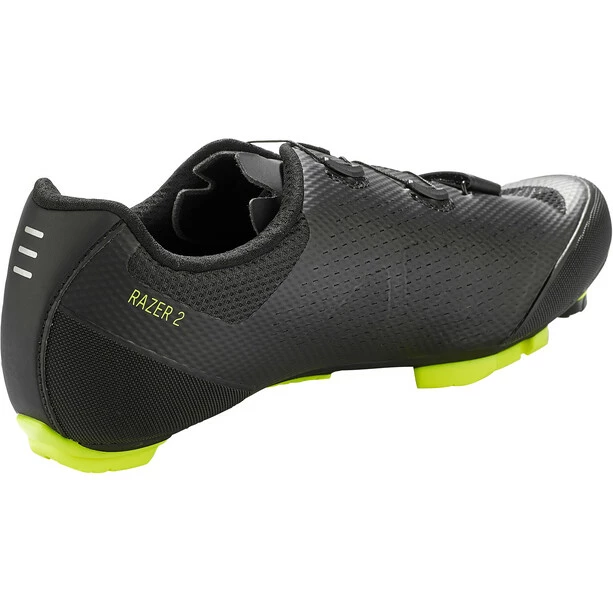 Der Razer 2 MTB von Northwave sorgt mit seiner XC 10 Sohle mit einem Steifigkeitsindex von 10,0 und TPU-Einsätzen in strategischen Punkten für hohe Traktion und hervorragende Verschleißfestigkeit. Die Unibody-Konstruktion kombiniert strategisch platzierte große Mesh-Einsätze mit ultradünnen, verstärkten Materialien, um unvergleichliche Atmungsaktivität und gezielte Stabilität zu gewährleisten. Die asymmetrische Schnürung entlastet die Oberseite des Fußes für eine optimale Passform. Geschweißte TPU Verstärkungen an Zehen und Fersen sorgen für zusätzlichen Schutz.