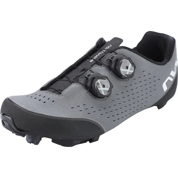 Der Rebel 3 von Northwave hat eine Carbon XC12 Sohle mit einem Vollcarboneinsatz im Pedalbereich und einem Steifigkeitsindex von 12,0. TPU-Einsätze an strategischen Stellen sorgen für hohe Traktion und hervorragende Verschleißfestigkeit. Außerdem verfügt er über thermoverschweißte TPU-Verstärkungen im Zehen- und Fersenbereich für zusätzlichen Schutz. Der Rebel 3 ist mit zwei SLW3-Drehverschlüssen ausgestattet. Dies ist der einzige Drehverschluss mit einer schrittweisen und vollständigen Freigabeoption in einer einzigen Taste für eine optimale Druckverteilung.