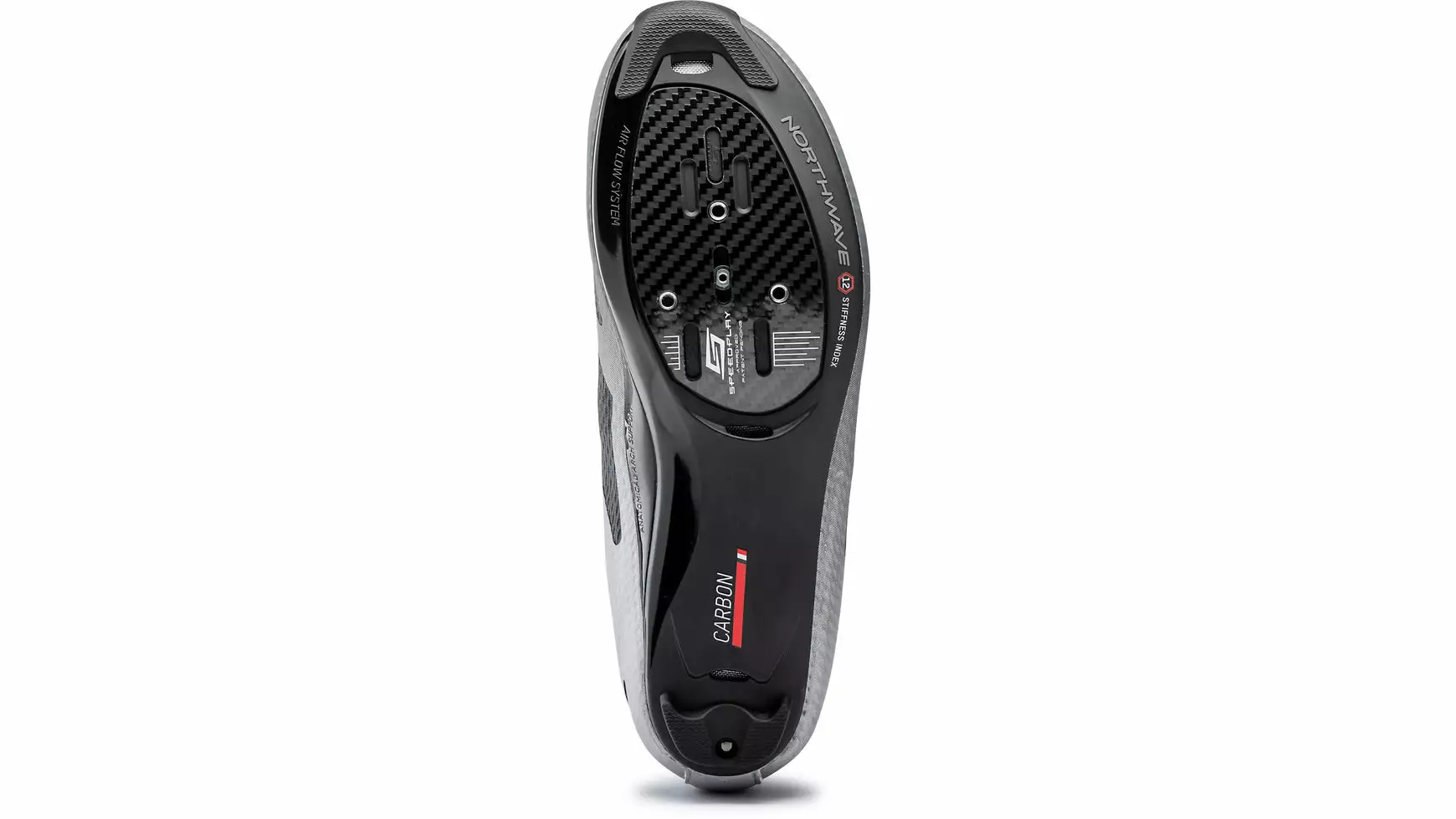 Der Northwave Storm Carbon ist mit gewissen Extras ein spitzen Schuh. Mit seiner Morph Carbon 12 AAS-Sohle, die mit einem Vollcarbon-Einsatz im Pedalbereich ausgestattet ist, wird für optimale Steifigkeit gesorgt. Der exklusive Anatomical Arch Support aus TPU ermöglicht eine perfekte Formgebung des Schuhs und ist somit die ideale Sohle für jeden Fußtyp. Der NW Speedplay-Adapter sorgt für eine niedrige Stapelhöhe zwischen Fuß und dem Pedal. Die Unibody-Konstruktionpasst zu großen Mesh-Einsätzen mit ultradünnen verstärkten Materialien, die für unübertroffene Atmungsaktivität und gezielte Stabilität sorgen. Das offenmaschige Netz sorgt für eine bessere Luftzirkulation. Die asymmetrische Schnürung entfernt den Druck von der Oberseite des Fußes für eine optimale Passform.