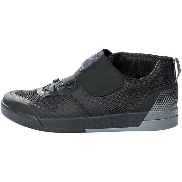 Hooked on a pedal: der Alleskönner unter den Flatpedal Schuhen. Next Level of Bike and Hike ? Dann ist der AM Moab Tech genau das Richtige für abfahrtsorientierte Mountainbiker. Die asymmetrische Schaftkonstruktion in Kombination mit dem Boa L6 Drehverschluss sorgt für die richtige Stabilität und lässt sich perfekt und individuell an Deinen Fuß anpassen. Eine zusätzliche Abdeckung des BOA Drehverschlusses schützt vor Schmutz und sorgt für weitere Stabilität. Das angeraute Fersenfutter sowie die anatomisch vorgeformte Ortholite Einlegesohle unterstützen die sportliche Passform. Die Einlegesohle ist im Pedalbereich mit härterem PU-Schaum ausgestattet und liefert perfekte Kraftübertragung auf dem Pedal. Für zusätzlichen Komfort und Schutz sorgt die EVA Mittelsohle, die im Fersenbereich ein zusätzliches Dämpfungselement eingearbeitet hat. Der hochgezogene Kragen auf der Knöchelinnenseite bietet Schutz vor Kurbelschlägen; die verstärkte Zehenkappe schützt vor Steinen und Ästen. Die neuentwickelte AM Flat Sohle bringt Dich auf ein neues Level im Bike und Hike. Das abgestufte Hexagon-Profil im Pedal Bereich in Kombination mit der weichen SUPtraction Flat Gummimischung sorgt für perfekten Grip auf dem Pedal und viel Fahrspaß. Im Zehen- und Fersenbereich hat die Sohle eine tiefere Profilierung, die in Trage- und Schiebepassagen den nötigen Halt bietet. Zusätzlich fungieren die Hexagons wie Schuppen, die sich beim Gehen in den Boden verkeilen und so auch in kritischen Passagen für festen Grip sorgen.